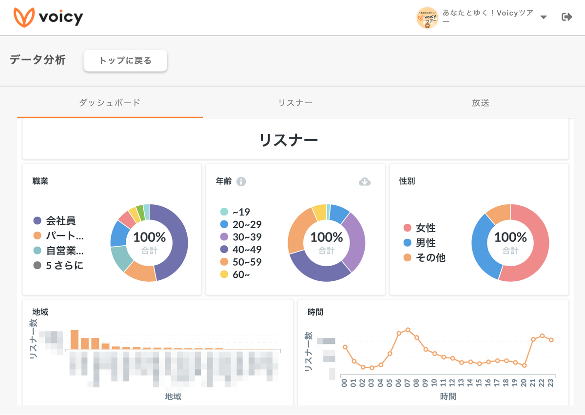 最後に【放送に対してどんな反応・行動が行われているか】として、新規リスナー・既存リスナーがどのような行動をしているか・どんなリスナーが聞いているかのデモグラ・フォロワーの行動など詳細に表示していきます。
